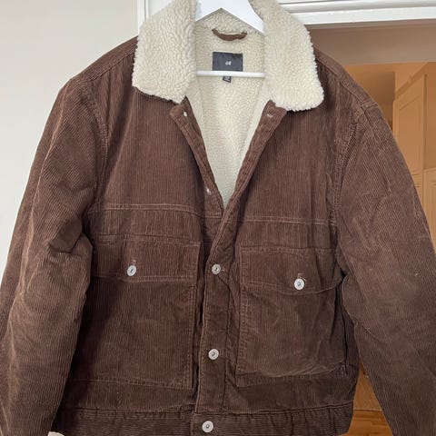 Myydään siisti miesten beige H&M:n puuvillapintainen vuorillinen takki. Kokomerkintä L, mutta on reilu oversize-malli, joten enemmänkin kokoa XL.