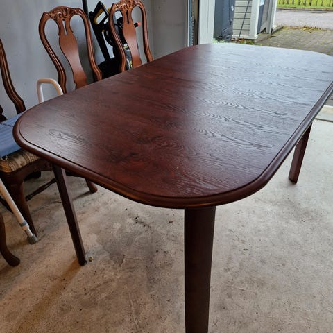 Tiikkinen ruokapöytä pituus 190 jatko 60 8 tuolia tiikiset tuolit harmaa istuin