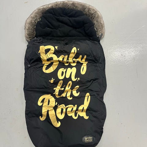 Lämpöpussi rattaisiin, 100*50 cm. Aukot 5-pistevaljaille. Irroitettava tekoturkisreunus. Kaksi vetoketjua pussin molemmilla reunoilla. Heijastava kangas, kts. kuva. Väri musta/tumman harmaa.