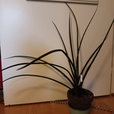 Myydään suurikokoinen vihreälehtinen anopinkieli. Kasvin korkeus on ruukkuineen 190 cm plus pari korkeampaa lehteä. Pitää ensi keväänä vaihtaa isompaan ruukkuun.