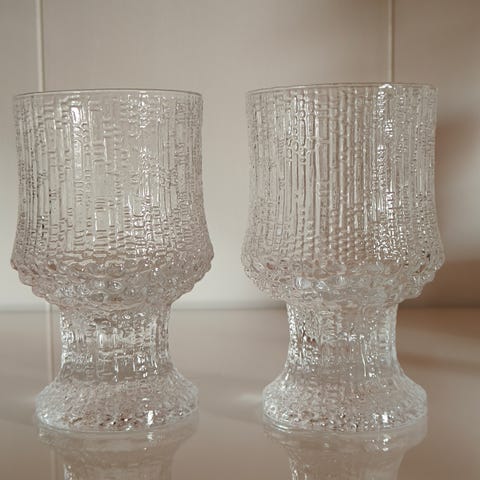 3 kpl juomalaseja 70v luvun lopulta tai 80-luvun alusta, ei ollut käytössä. Korkeus 8,5 cm,tilavuus 18cl. Tapio Wirkkala Ultima thule. Nouto, tai voin kuljettaa lähialueelle. Mobilebay tai käteinen.