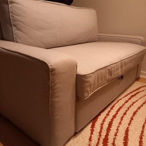 Patjassa tahroja jotka yritetty puhdistaa mutta ei ole lähtenyt.