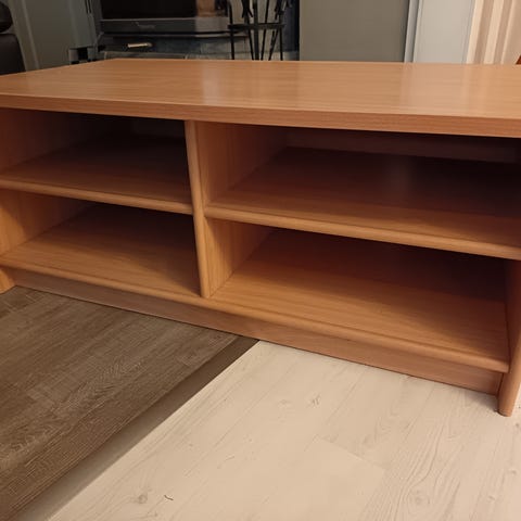 TV-taso, jossa puinen kansi ja runko sekä lasiovet. Sisältää hyllytilaa ja avoimia osioita. Väri on luonnonpuu ja valkoinen. Sopii olohuoneen kalusteeksi televisiolle ja muille laitteille.