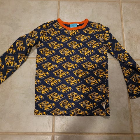Oranssinpunainen me&i monsterikuvioinen paita koko 110/116.