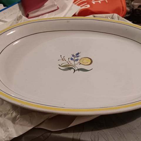 Arabian tuotantoa oleva käsinmaalattu tarjoilulautanen. Suunnittelija Svea Granlund.
