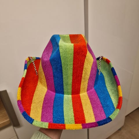 Mustaa kangasta valmistettu noidanhattu, unisex-koko. Hattu on leveälierinen ja pehmeästä materiaalista valmistettu.