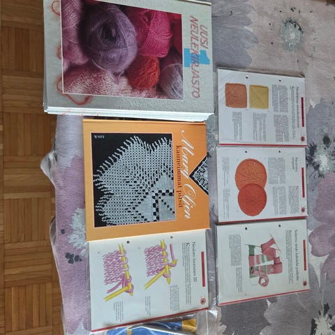 Ohjeita puseroiden, villatakkien, mummon neliöiden ja muiden käsityötuotteiden neulomiseen ja virkkaamiseen. Kirjassa on ohjeita myös huiveihin ja myssyihin. Kirja sisältää kuvitettuja ohjeita neulomiseen ja virkkaamiseen, mukaan lukien tekniikoiden opastusta. Osa sivuista irti, kaikki sivut tallella.