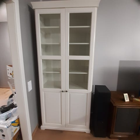 Myydään muuton myötä tarpeettomana valkoinen Ikean vitriini, kaappi, lasiovellinen kaappi. N 2 v vanha
