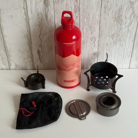 Samalla,yleisellä kaasupatruunalla toimivat keitin ja valaisin.Mukaan puolikas kaasupatruuna.