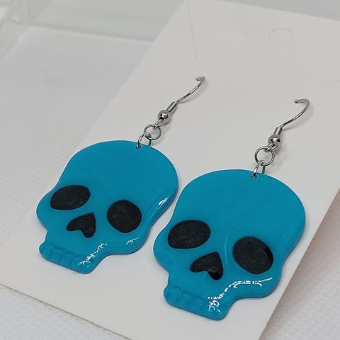 Pääkallokorvakorut – turkoosi, käsintehty, rock-tyyli