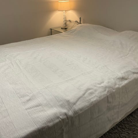 Kaunis, ruskea Hemtexin päiväpeitto, joka ei ole ollut käytössä. Toinen puoli on samettia ja toinen puoli tasaista puuvillakangasta. Koko 180x260 cm.