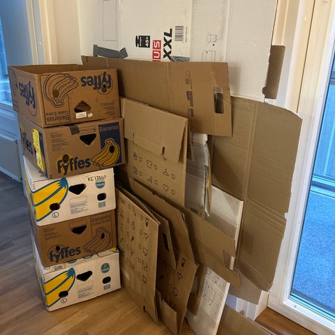 Muuttolaatikoita, osa tosi hyviä kaupasta ostettuja esim biltema, osa vähän huonompia perus pahvilaatikkoja. Mutta vallan hyvä setti. Tussimerkintöjä/teippejä löytyy. Nopea nouto Puistolasta, koiratalous ☺️