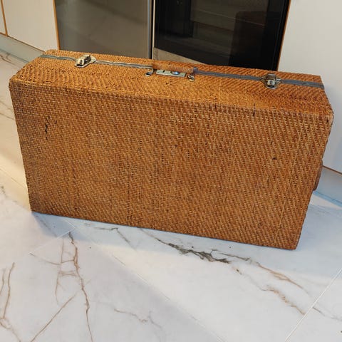 Vanha matkalaukku, joka on seikkaillut 1950-1960 luvuilla taiteilija-tätini matkassa Eurooppaa ristiin rastiin: Tukholma, Pariisi, Rooma ainakin.