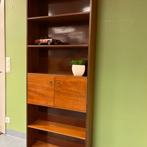 Hieno Teak viiluinen hylly 50-60 luvulta. Yksi hylly vielä lisää mikä ei näy kuvassa. Toimitus järjestyy.