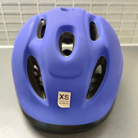 Limar pyöräilykypärä, ollut alakoululaisella, heijastintarroilla koristeltu.