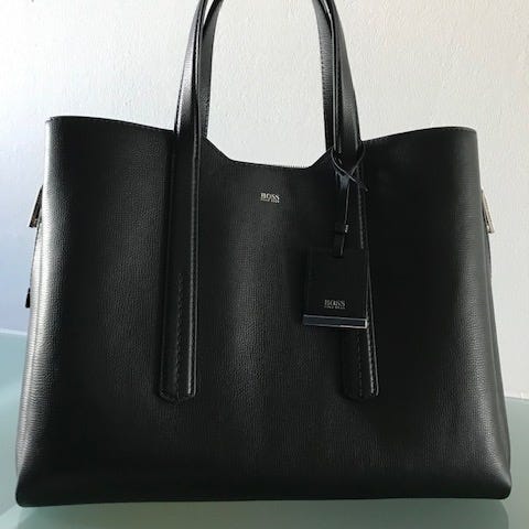 Hugo boss musta nahkalaukku. Moitteettomassa kunnossa.
