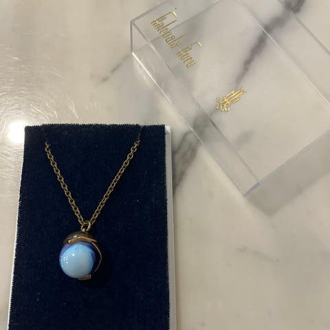Käyttämätön Kalevalan Tintti-riipus. ”Veikeän Tintti-korun suunnitteli 1990-luvulla kultaseppä Kai Lindström. Tinttien vatsapallot ovat käsinmaalattua keramiikkaa ja sävyt yksilöllisiä.”