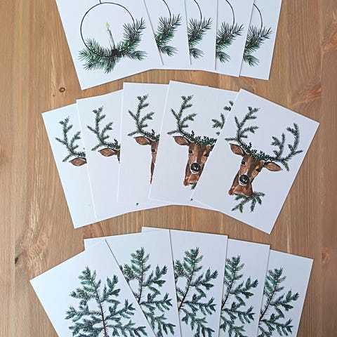 Käyttämättömät vähän vanhemmat hauskat joulukortit 0,80 e kpl