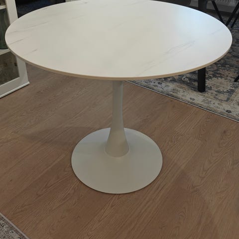 Jämäkkä ja painava pöytä, ei ole kiikkerä.