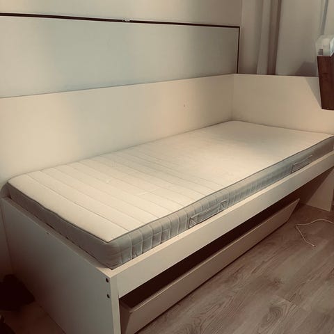 IKEA Mosshult -patja, mitat 90 × 200 cm, paksuus 10 cm. Jämäkkä ja mukava vaahtomuovipatja, sopii hyvin yksittäiseen sänkyyn, vierasvuoteeksi, mökille tai arjen käyttöön. Patjassa on irrotettava päällinen, jonka voi pestä helposti pesukoneessa (max 60 °C).