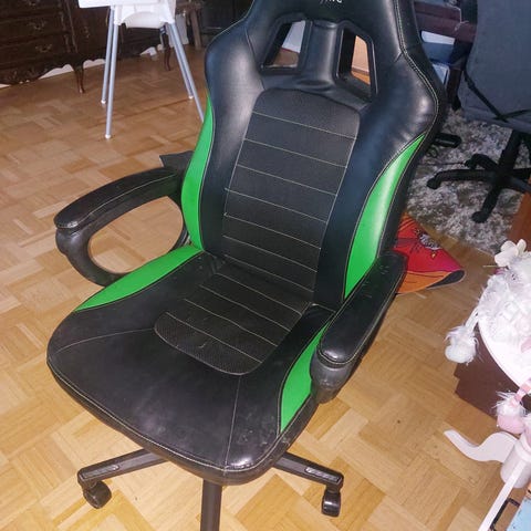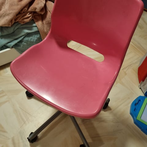 Annetaan siisti kevyt runkoinen toimistotuoli. Väri pinkki musta