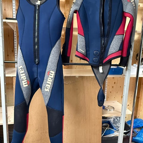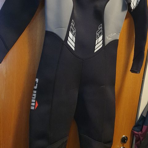 3-5mm, Mares kokopitkä märkäpuku, vesiurheiluun. Vetoketjun vedin kaipaa pientä korjausta.