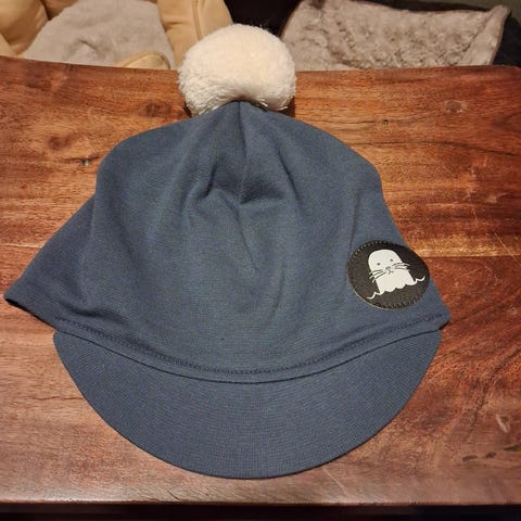 SuperYellow pipo käyttämätön. Puuvilla/elastaani. Koko 52-56cm. Vaaleanharmaa. Tupsu. Lippa.