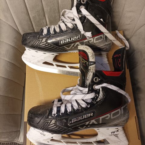 Erittäin hyväkuntoiset Bauer XL5 hokkarit Bauerin kokomerkinnällä L5, eli 39 eurooppalaisilla mitoilla. Hyvässä terässä.