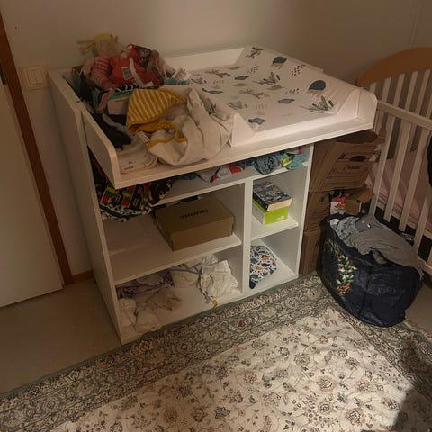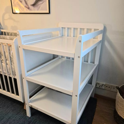 Kokoon taiteittava hoitopöytä, joka on todella kätevä vaipan vaihdossa. Höytöpöytä on varustettu säilytystaskuilla ja alahyllyllä.