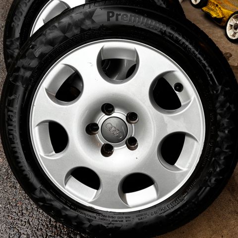 Audi A3:n 16 tuuman hyväkuntoiset vanteet ja Continental nastarenkaat 5mm pinnalla.