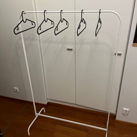 Myydään Ikea Mulig vaateteline, väri valkoinen. Siisti käytetty kunto.