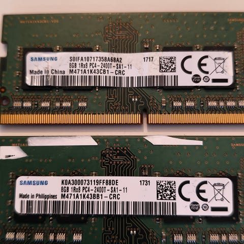 Kannettavan tietokoneen muistikammat. Muistitestit ok.
