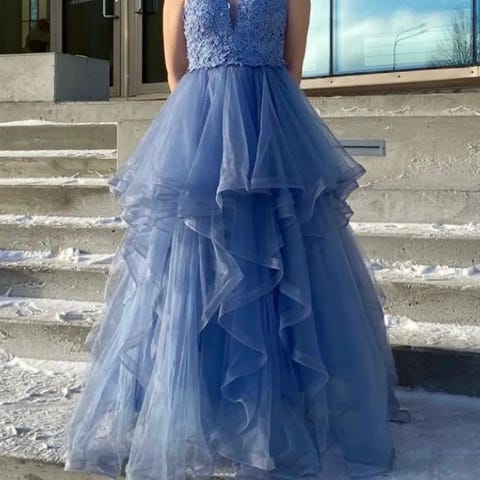 Zazabellan vanhojentanssimekko. About kokoa XS-S. Olen itse 165cm ja tanssin tennareilla, helmassa 10cm kääntövara eli menee myös 175cm pitkälle😊