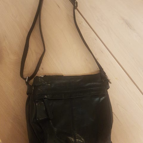 Musta nahkainen The Chesterfield Brandin käsilaukku /olkalaukku. Olen pari kertaa käyttänyt, joten mielestäni kunto on uutta vastaava tai vähintäänkin erinomainen. Nahalle tyypillistä pientä painumaa säilytyksestä.
