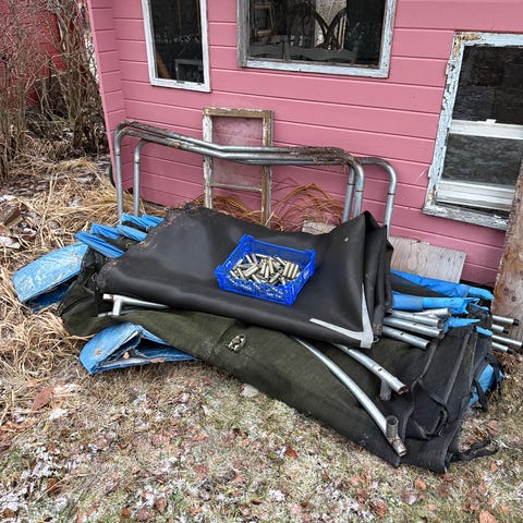 Mukaan myös suojaverkon tukirakenteet, mutta verkkoa ei ole. Nopeimmalle noutajalle.