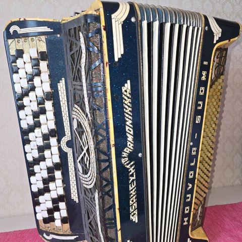 La Melodiosa harmonikka, malli 120, valmistettu Italiassa. Harmonikassa on jonkin verran käytön jälkiä, mutta muuten ehjä ja hyvin soiva. Sopii monipuoliseen soittoon. Mukaan tulee kova laukku, Lasse Pihlajamaan harmonikka opas ja laatikollinen nuotteja. Kulkee sopimuksen mukaan n. 100 km säteellä Pieksämäeltä tai nouto. Myös tarjouksia otetaan vastaan.