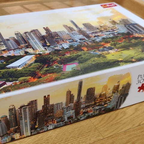 Myydään 1000 palan Eiffel-torni palapeli avaamattomassa pakkauksessa.