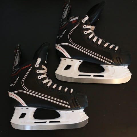 Tackla99 luistimet kokoa 43. Pohjallisen mitta 28cm. Jonkun verran käytetyt, mutta vielä menevät seuraavalle =)