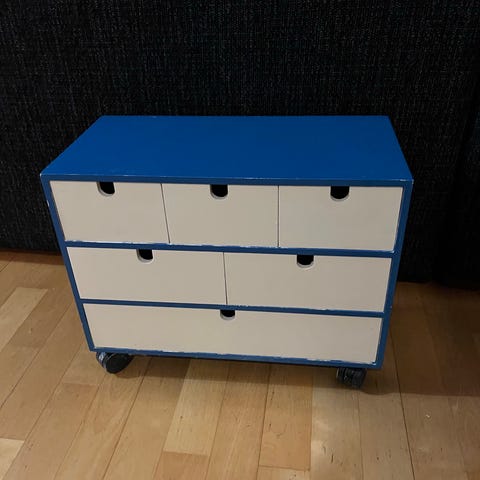 Pyörillä oleva pieni lipasto,leveys noin 50cm ja korkeus noin 60cm, syvyys 35cm