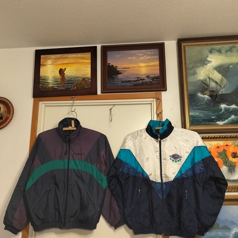 Vasemmalla puolella takki 13e on pieni ommeltu reikä. Toinen takki ohut vanuvuori 2mm erinomainen kunto 15e