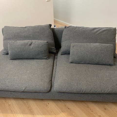 IKEAn Söderhamn sohva. Värinä Gunnared beige. Sohva koostuu kahdesta irrotettavasta palasta ja kaikki päälliset ovat pestäviä. Useamman vuoden vanha, mutta hyvässä kunnossa!