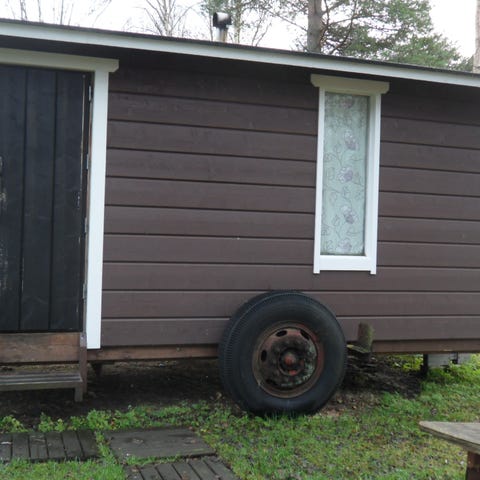 Lauttaa on kuljetettu viimeksi kahdessa osassa. On pulteilla kiinni keskeltä eli saa kahteen osaan kuljetusta varten. Saunamökki myös irrotettavissa erikseen ja nyt nostettukin erillisenä.