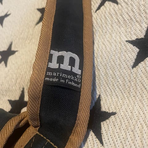 Myydään siistissä kunnossa oleva Marimekon musta Baby Gratha laukku. Mukana tulee kuvassa näkyvä dust bag.