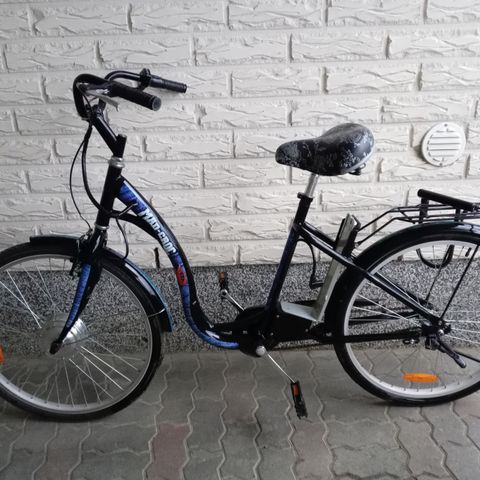 Kuvista saa selvempää. Takana on 8lehtinen pakka ja jarrulevy (Northfit300) 250km ajettu pyörä, joka meni takuuseen siitä sähköosat ja takamoottori 250w.