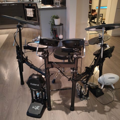 Myynnissä ylimääräiseksi jääneet mesh-kalvolliset sähkörummut. Olleet minulla kevyessä kotitreenikäytössä vajaat 10 vuotta ja nyt viimeiset kolmisen vuotta seisoneet käyttämättömänä. Jokun verran elämän jälkiä mutta ei vikoja ja kaikki pelaa niinkuin pitääkin, ainut miinus on lattiatomipädin pinnassa oleva röppö joka ei vaikuta toimintaan.