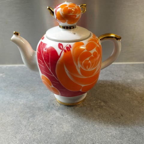 Lomonosov teekannu korkeus ilman kantta 13cm, kannen kanssa 16cm. 25e