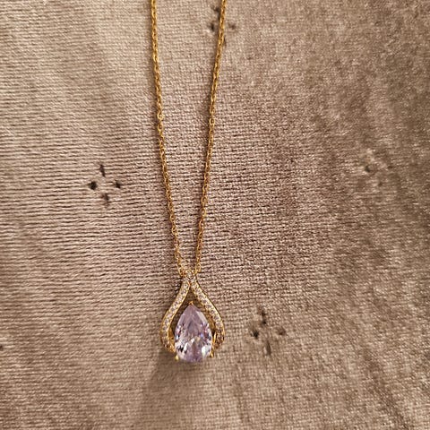 Kaunis hopeanvärinen kaulakoru zirkoneilla. Ruostumatonta terästä. Myytävänä myös muualla.