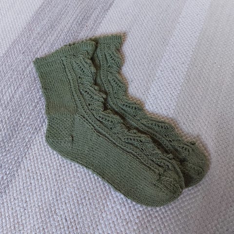 Mummon tekemiä pitsi villasukkia eri koossa ja väreissä. Tehty huolella ja rakkaudella. Lankana käytetty seitsemää veljestä.