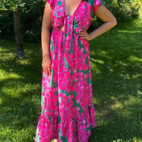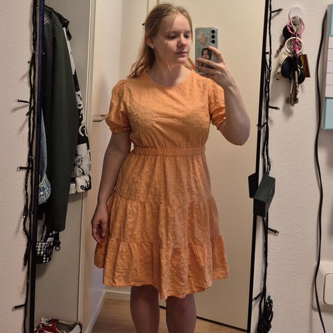 Flower todella hyväkuntoinen , pari kertaa pidetty oranssi kukkakuvioinen mekko.