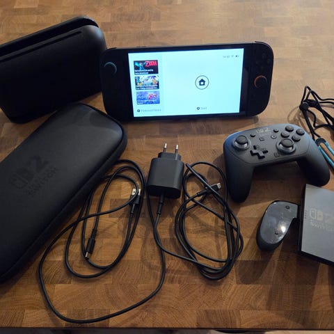 Tästä lähtis erittäin hyvässä kunnossa oleva nintendo switch 2 pidetty erittäin hyvää huolta ei naarmuja tai mitään näytössä panssari lasi ja kuoret suojaavat erittäin hyvin mukana tulee nämä: